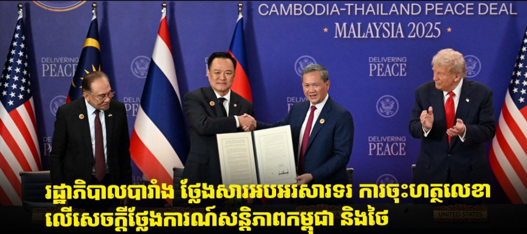 ភ្នំពេញ)៖ រដ្ឋាភិបាលបារាំង នៅថ្ងៃទី២៨ ខែតុលា ឆ្នាំ២០២៥ បានថ្លែងសារអបអរសារទរ ការចុះហត្ថលេខាលើសេចក្តីថ្លែងការណ៍សន្តិភាពរវាងកម្ពុជា និងថៃ នៅទីក្រុងគូឡាឡាំពួរ ប្រទេសម៉ាឡេស៉ី។