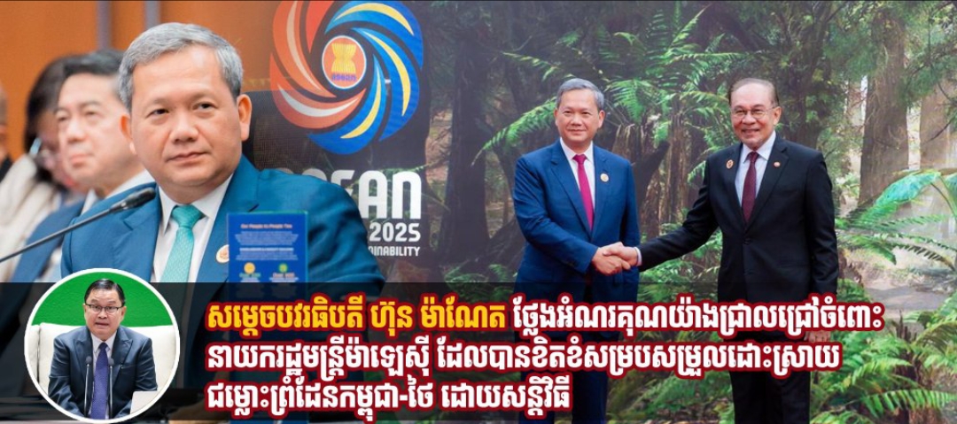 សម្តេចបវរធិបតី ហ៊ុន ម៉ាណែត ថ្លែងអំណរគុណយ៉ាងជ្រាលជ្រៅចំពោះនាយករដ្ឋមន្រ្តីម៉ាឡេស៊ី ដែលបានខិតខំសម្របសម្រួលដោះស្រាយជម្លោះព្រំដែនកម្ពុជា-ថៃ ដោយសន្តិវិធី