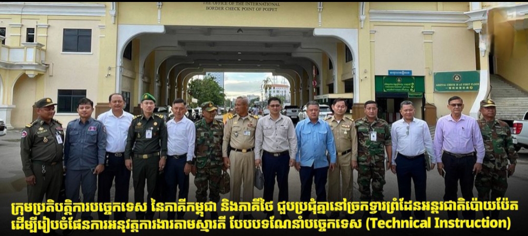 ក្រុមប្រតិបត្តិការបច្ចេកទេស នៃភាគីកម្ពុជា និងភាគីថៃ ជួបប្រជុំគ្នានៅច្រកទ្វារព្រំដែនអន្តរជាតិប៉ោយប៉ែត ដើម្បីរៀបចំផែនការអនុវត្តការងារតាមស្មារតី បែបបទណែនាំបច្ចេកទេស (Technical Instruction)