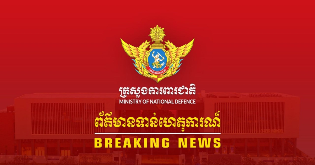 ក្រសួងការពារជាតិ៖ ផ្ទុះអាវុធនៅខាងភាគីថៃ ពេលក្រុមអ្នកសង្កេតការណ៍អាស៊ាន (AOT) ចុះទៅពិនិត្យនិងផ្ទៀងផ្ទាត់ការអនុវត្តបទឈប់បាញ់នៅច្រកច១ ឃុំថ្មដា ស្រុកវាលវែង ខេត្តពោធិ៍សាត់