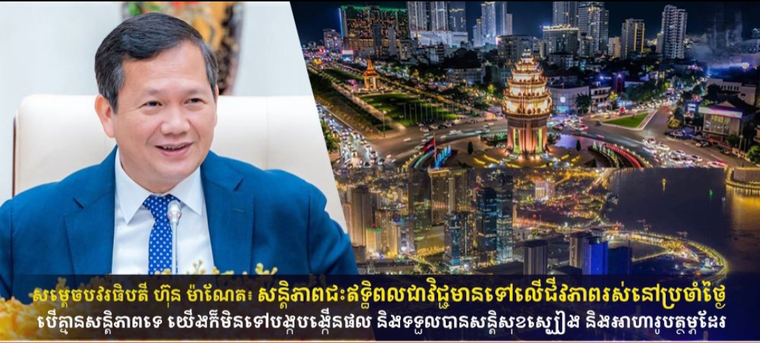 សម្តេចបវរធិបតី ហ៊ុន ម៉ាណែត៖ សន្តិភាពជះឥទ្ធិពលជាវិជ្ជមានទៅលើជីវភាពរស់នៅប្រចាំថ្ងៃ បើគ្មានសន្តិភាពទេ យើងក៏មិនទៅបង្កបង្កើនផល និងទទួលបានសន្តិសុខស្បៀង និងអាហារូបត្ថម្ភដែរ