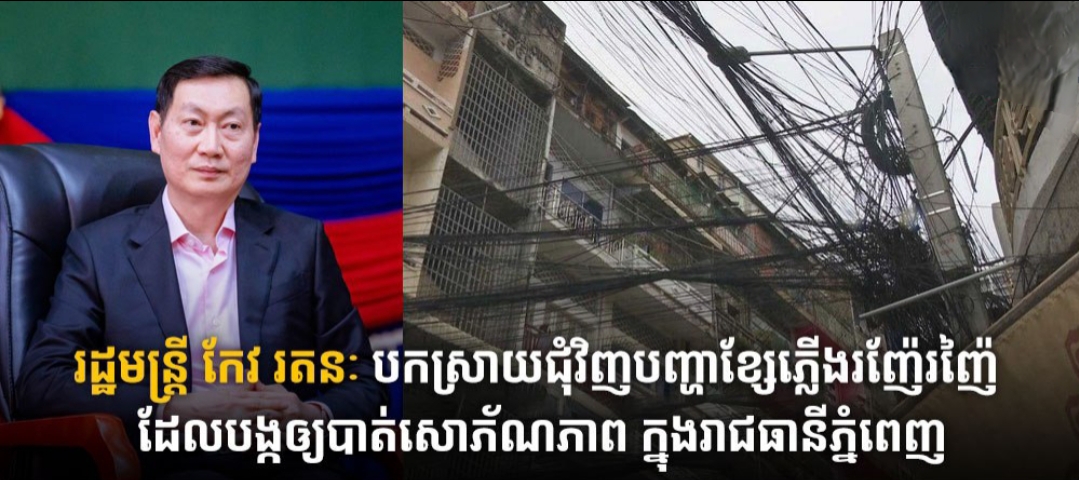 រដ្ឋមន្រ្តី កែវ រតនៈ បកស្រាយជុំវិញបញ្ហាខ្សែភ្លើងរញ៉ែរញ៉ៃ ដែលបង្កឲ្យបាត់សោភ័ណភាព ក្នុងរាជធានីភ្នំពេញ