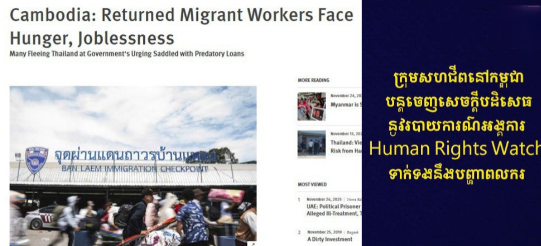 ក្រុមសហជីពនៅកម្ពុជា បន្តចេញសេចក្ដីបដិសេធនូវរបាយការណ៍អង្គការ Human Rights Watch ទាក់ទងនឹងបញ្ហាពលករ