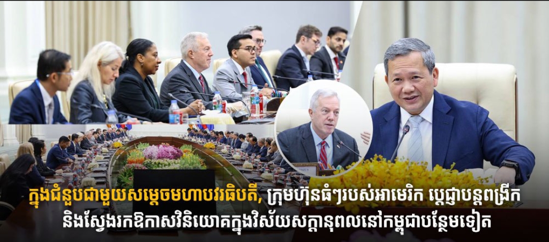 ក្នុងជំនួបជាមួយសម្តេចមហាបវរធិបតី, ក្រុមហ៊ុនធំៗរបស់អាមេរិក ប្ដេជ្ញាបន្តពង្រីក និងស្វែងរកឱកាសវិនិយោគក្នុងវិស័យសក្ដានុពលនៅកម្ពុជាបន្ថែមទៀត