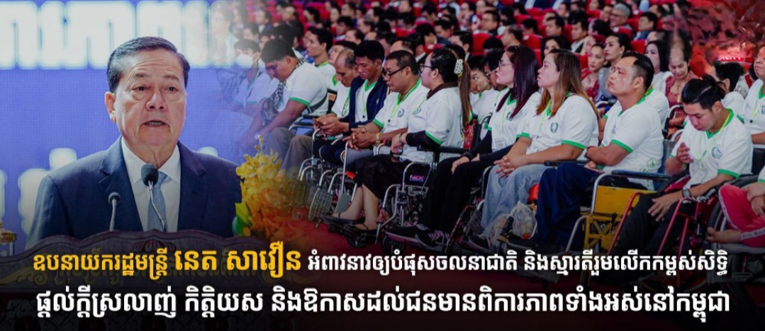 ឧបនាយករដ្ឋមន្ដ្រី នេត សាវឿន អំពាវនាវឲ្យបំផុសចលនាជាតិ និងស្មារតីរួមលើកកម្ពស់សិទ្ធិ ផ្ដល់ក្ដីស្រលាញ់ កិត្តិយស និងឱកាសដល់ជនមានពិការភាពទាំងអស់នៅកម្ពុជា ពិការភាពអាចប្រើប្រាស់បានងាយស្រួល។