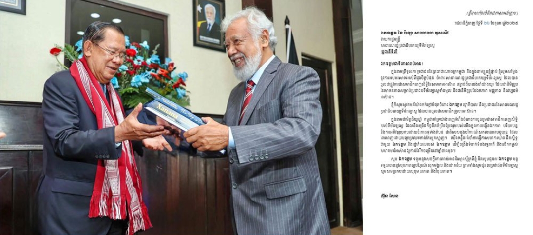ភ្នំពេញ)៖ សម្ដេចតេជោ ហ៊ុន សែន ប្រធានព្រឹទ្ធសភា នៃព្រះរាជាណាចក្រកម្ពុជា បានផ្ញើសារលិខិតអបអរសាទរ ជូនលោក ខៃ រ៉ាឡា សាណាណា គុសម៉ៅ នាយករដ្ឋមន្ត្រី សាធារណរដ្ឋប្រជាធិបតេយ្យទីម័រឡេស្តេ ដែលបានចូលជាផ្លូវការ ជាសម អានបន្ត